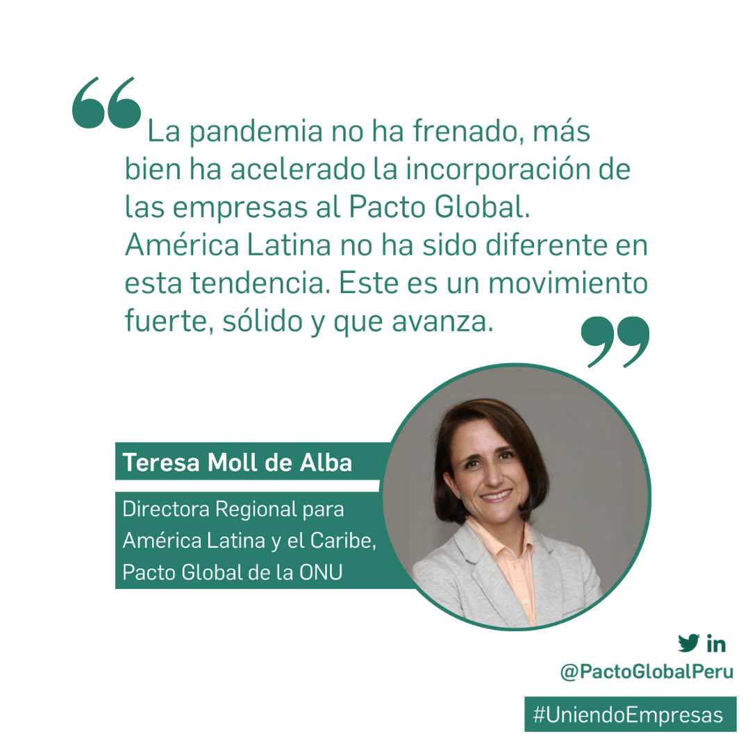 At this time when people from 16 departments of Peru and 15 countries have joined the live broadcast on May 25, 2022, "it is clear that in addition to being the largest sustainability initiative in the world with more than 16 thousand companies participants, the Global Compact represents an academic and practical reference for companies that are interested in innovating and evolving towards a sustainable and responsible way of doing business, inspired by international principles”, indicated Teresa Moll de Alba, Regional Director for Latin America and the Caribbean.